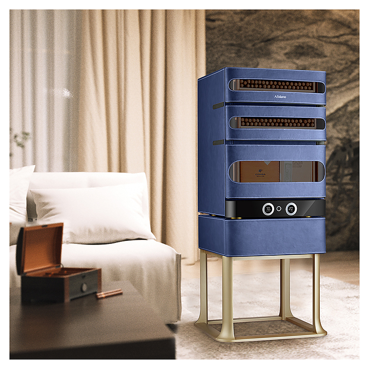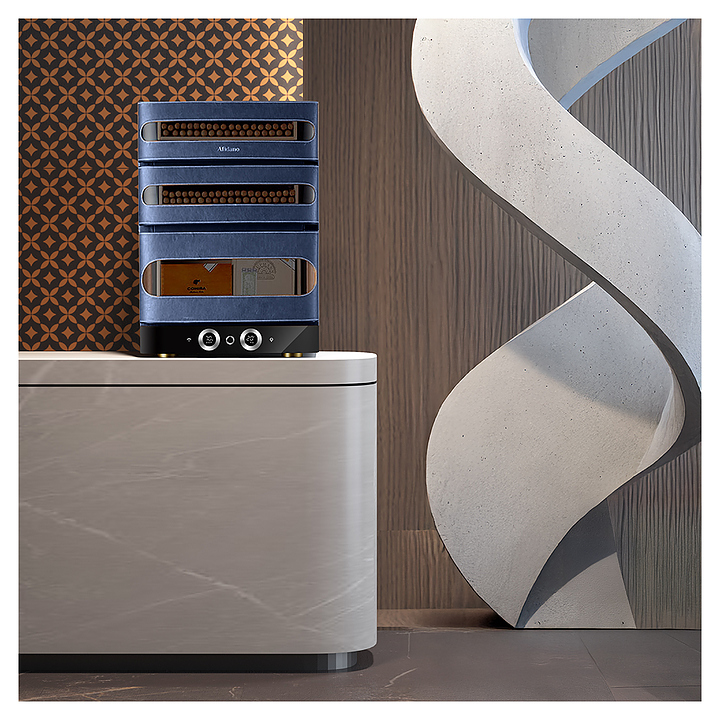 Шкаф Afidano L3 предназначен для хранения в оптимальных условиях и демонстрации сигар в специализированных магазинах, гостиницах, складских помещениях и домашних условиях. Модель оснащена 1 температурной зоной, 3 дверьми, открытием отпечатком пальца, сенсорной панелью управления, 3 выдвижными ящиками, утопленной ручкой, электронным термостатом и регулируемыми ножками. Цифровой гигрометр и внутренняя подсветка упрощают мониторинг и обзор содержимого. Корпус выполнен из стали, обшитой скульптурным полотном, внутренняя отделка и ящики - из испанского кедра. Особенности: