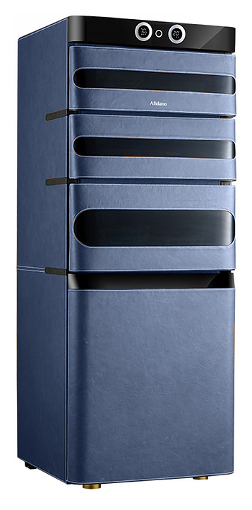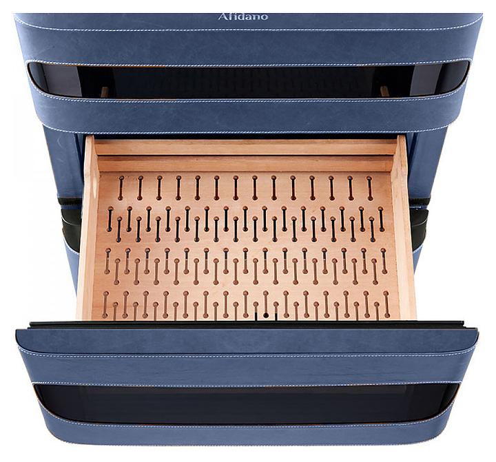 Шкаф Afidano L5 предназначен для хранения в оптимальных условиях и демонстрации сигар в специализированных магазинах, гостиницах, складских помещениях и домашних условиях. Модель оснащена 1 температурной зоной, открытием отпечатком пальца, сенсорной панелью управления, 5 выдвижными ящиками, утопленной ручкой, электронным термостатом и регулируемыми ножками. Цифровой гигрометр и внутренняя подсветка упрощают мониторинг и обзор содержимого. Корпус выполнен из стали, обшитой кожей, внутренняя отделка и ящики - из испанского кедра. Особенности: