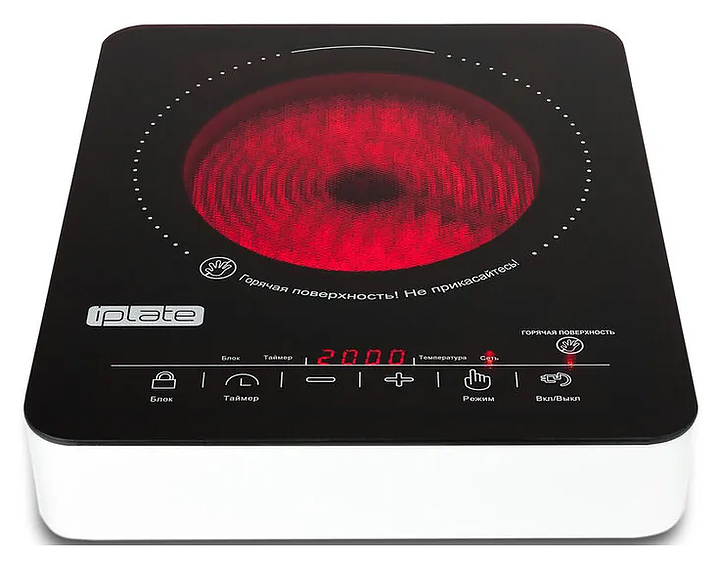 Галогенная плита Iplate H-22 предназначена для приготовления блюд в наплитной посуде на предприятиях общественного питания и торговли. Модель оснащена сенсорной панелью управления, регулировкой мощности и температуры нагрева. Работа галогенной плитки основана на передаче тепловой энергии с галогенного элемента на стеклокерамическую поверхность, нагревая при этом дно посуды и содержимое. Корпус выполнен из алюминия, цельная рабочая поверхность - из стеклокерамики класса А, низ корпуса - из пластика. Особенности: