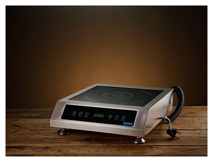 Индукционная плита Iplate ALINA предназначена для приготовления и разогрева блюд в наплитной посуде на предприятиях общественного питания и торговли. Модель оснащена 1 конфоркой, сенсорной панелью управления и таймером автоматического отключения. При размещении посуды большого объема опорную функцию ребер жесткости принимают на себя края корпуса, что исключает возможность разбить или выдавить весом варочную поверхность. Индукционная технология обеспечивает передачу до 90% энергии непосредственно посуде, что значительно экономит электроэнергию по сравнению с традиционными плитами, отсутствие открытого огня и минимальный нагрев окружающей среды делают приготовление пищи более безопасным и комфортным. Корпус выполнен из нержавеющей стали 201, рабочая поверхность - из цельной стеклокерамики класса А. Особенности: