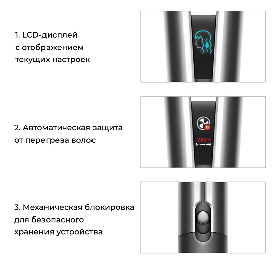 Щипцы-выпрямитель Dyson HT01 Airstrait Ceramic используется в парикмахерских, салонах красоты и домашних условиях для выпрямления волос и создания разнообразных причесок. Модель обеспечивает быстрый и эффективный нагрев. ЖК-экран пользовательского интерфейса показывает выбранный режим и температуру для контроля процесса укладки. Покриытие пластин выполнено из керамики. В комплект поставки входит футляр. Особенности: