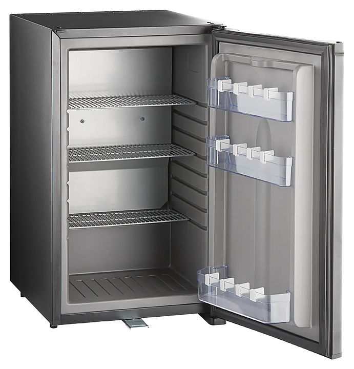 Минибар TEFCOLD TM55 предназначен для охлаждения, демонстрации и кратковременного хранения скоропортящихся продуктов и напитков в отелях и гостевых домах. Модель оснащена глухой распашной дверью, светодиодным внутренним освещением, 3 регулируемыми полками, термометром и замком. Внутренняя отделка выполнена из прочного АБС пластика, полки - из проволоки. Особенности: