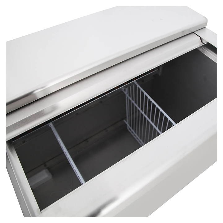 Холодильный ларь TEFCOLD BHC100X1 предназначен для охлаждения и хранения бутылок и банок в складских помещениях, производственных цехах и на предприятиях общественного питания и торговли. Модель оснащена 1 крышкой и регулируемыми по высоте ножками. Корпус выполнен из нержавеющей стали СС 201. Особенности: