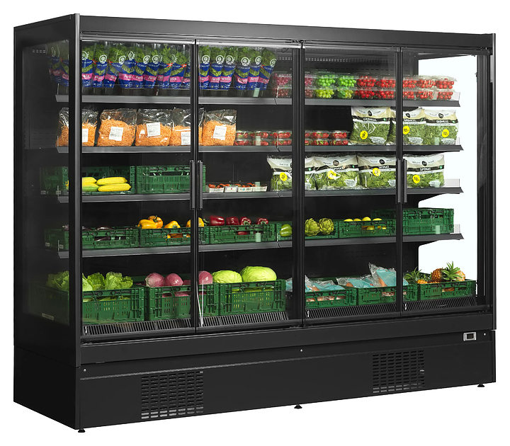 Холодильная горка TEFCOLD EXTRA2500CD предназначена для демонстрации, охлаждения и кратковременного хранения гастрономических товаров на предприятиях общественного питания и торговли. Модель оснащена 4 прозрачными дверьми, 4 рядами полок с держателями ценников, термометром и 6 регулируемыми ножками. Вертикальные светодиодные светильники обеспечивают отличное освещение и выгодно подчеркивают содержимое. Двери и торцы выполнены из стекла, полки - из металла. Особенности:
