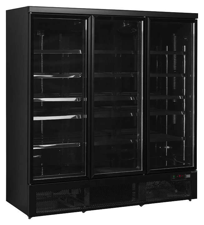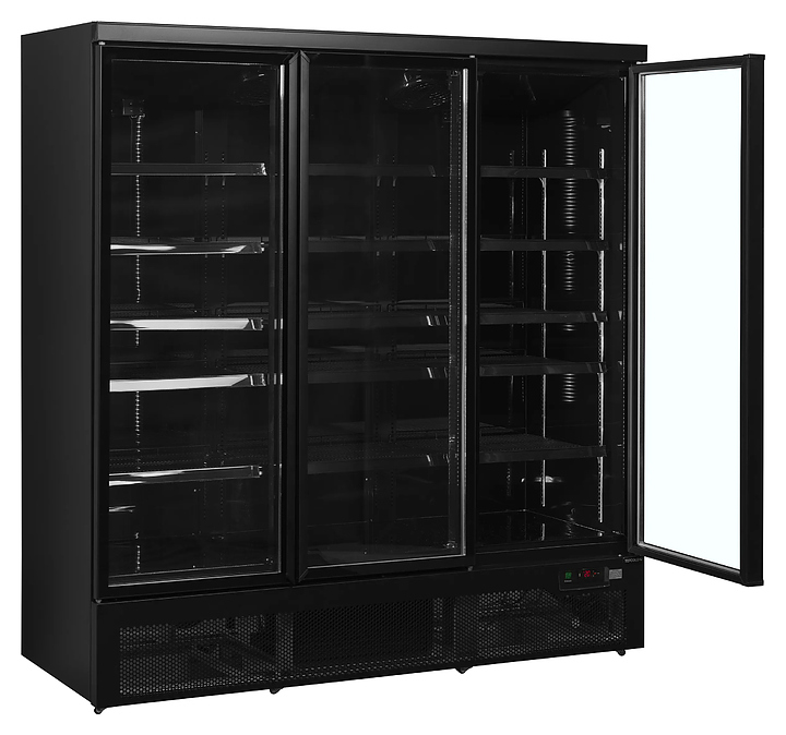 Холодильный шкаф TEFCOLD ATOM MAXI C3DBB предназначен для охлаждения и кратковременного хранения скоропортящихся продуктов и напитков на предприятиях общественного питания и торговли. Модель оснащена 3 распашными прозрачными дверьми, 15 регулируемыми полками, встроенными ручками, термометром и 6 колесами. Двери выполнены из двойного закаленного стекла, основание - из нержавеющей стали с зеркальным эффектом. Особенности: