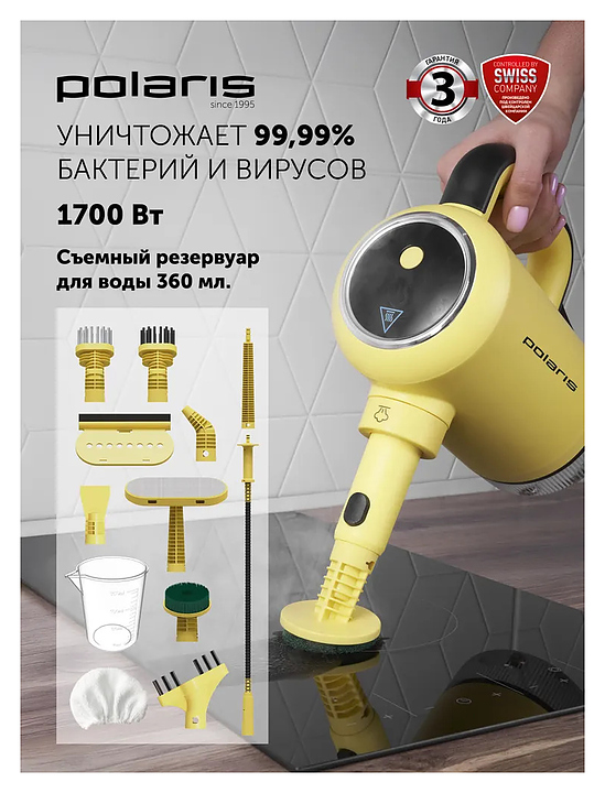 Пароочиститель компактный Polaris PSC 1712C желтый