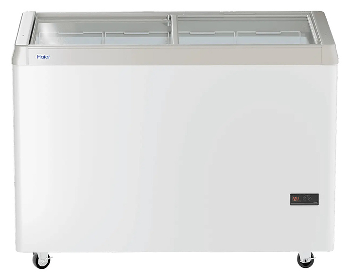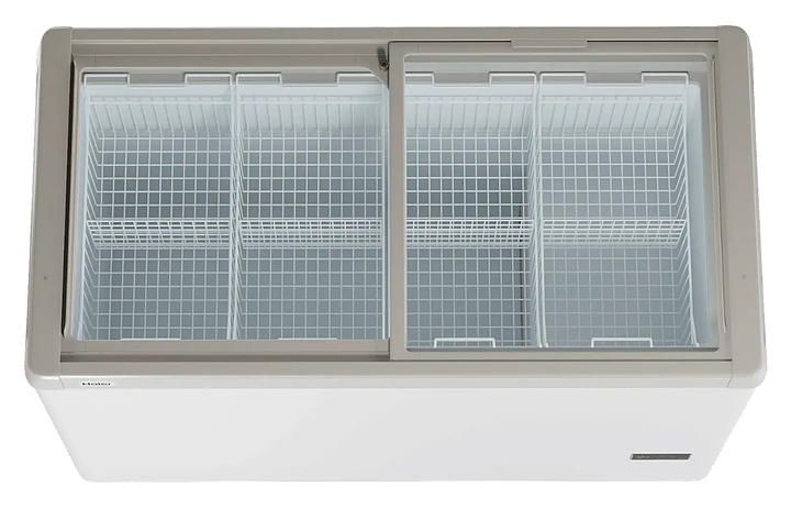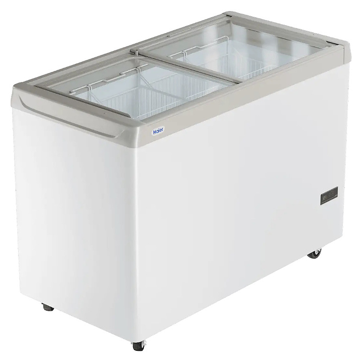 Морозильный ларь Haier SD-405FPEL предназначен для демонстрации, заморозки и длительного хранения продуктов и полуфабрикатов на предприятиях общественного питания и торговли. Модель оснащена сенсорным дисплеем, 2 раздвижными дверями с прямым закаленным теплоотражающим стеклом, 4 усиленными прорезиненными колесами, 2 из которых поворотные и съемным металлическим замком. В комплект поставки входят 4 корзины из стального прута с полимерным покрытием. Особенности: