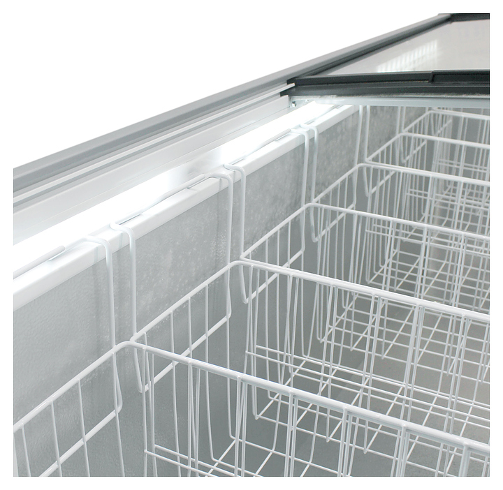 Морозильный ларь Бирюса Б-CF68 предназначен для заморозки и длительного хранения продуктов и полуфабрикатов в складских помещениях, производственных цехах и на предприятиях общественного питания и торговли. Модель оснащена гнутыми раздвижными крышками с замком, 1 компрессором и 4 колесами со стопором. Крышки выполнены из стекла. В комплект поставки входят 8 корзин. Особенности: