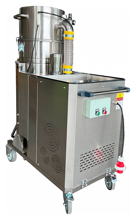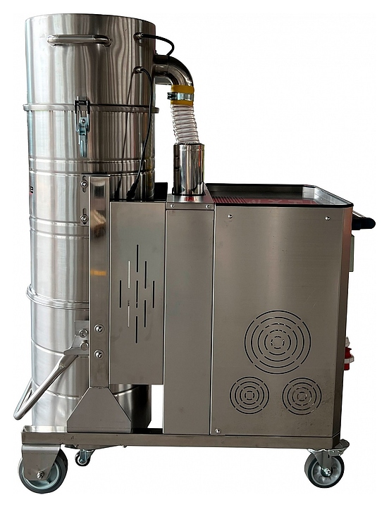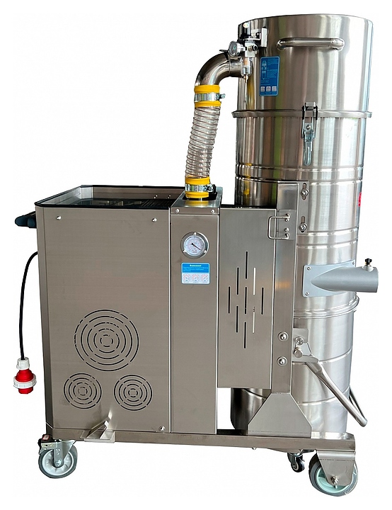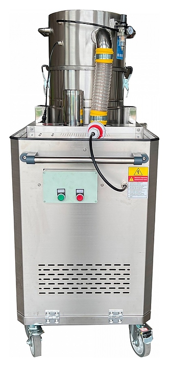 Индустриальный пылеводосос EVOline 1100 3,0 kW AUTO предназначен для сухой и влажной уборки в ходе ремонтно-строительных или реставрационных работ, очистки автомобильных салонов, мягкой мебели и напольного покрытия на предприятиях пищевой, металлообрабатывающей и других направлений промышленности, складах, в мастерских и производственных цехах. Модель оснащена расположенным с тыльной стороны коробом с моторным отсеком, панелью управления с нажимными клавишами, нагнетательным шлангом, цилиндрическими барабаном и баком, каркасной рамой с шасси и ведущей рукояткой. Барабан, бак и шумоглушитель выполнены из нержавеющей стали с полированной поверхностью, рама и короб моторного отсека – из нержавеющей стали с матовой поверхностью, ведущие рукоятки корпуса и бака – из профиля круглого сечения из нержавеющей стали, нагнетательный шланг – из прозрачного поливинилхлорида (ПВХ) с армированием металлической проволокой. Комплектация: