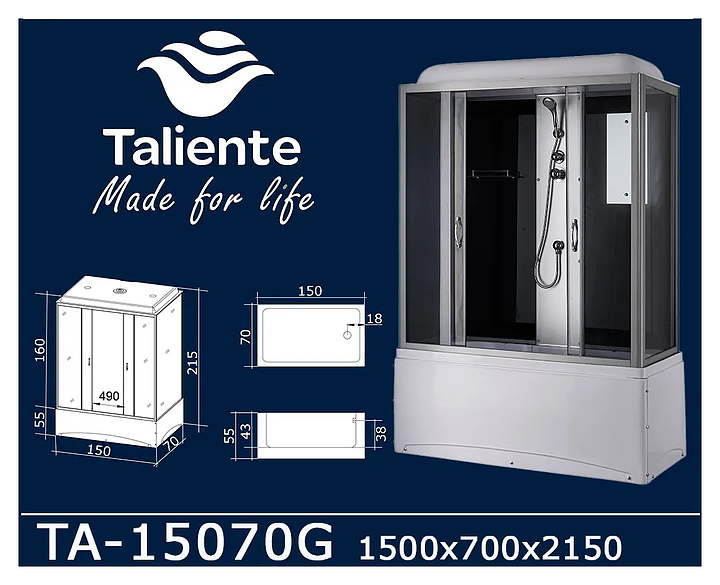 Душевой бокс Taliente TA-15070G 150х70х215 см черный