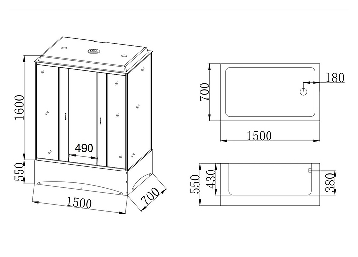 Душевой бокс Taliente TA-15070M 150х70х215 см белый