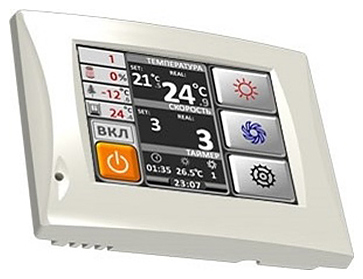 Цифровая индикация заданной и фактической температуры в градусах Цельсия, степени интенсивности вентиляции, степени загрязненности фильтра в процентах, настроек длительности работы, текущих даты и времени