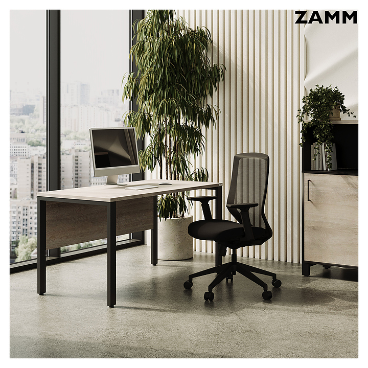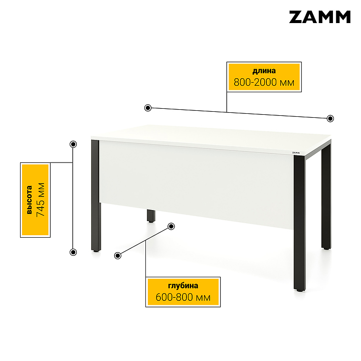 Прямой офисный стол ZAMM 60х30 серии Формат Pro позволяет объединить рабочие места в бенч-систему (несколько рабочих мест на единой опоре), установить подвесные тумбы с простой перестановкой слева/справа в офисных помещениях. Модель оснащена экраном ЛДСП. Столешница выполнена из ДСП, опоры - из металла. Особенности: