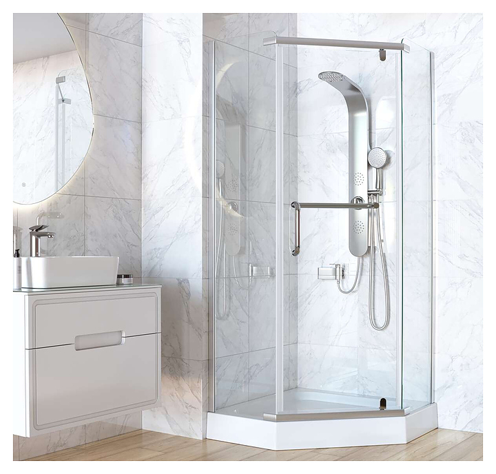 Душевой уголок Taliente TA-09093-1CP предназначен для использования в ванных комнатах. Модель оснащена настенным профилем, двумя неподвижными и одной распашной секцией с ручкой. Панель выполнена из закаленного прозрачного стекла, профиль из алюминия, который устойчив к окислению и появлению коррозии, обеспечивает герметичность и легкость конструкции. Особенности:
