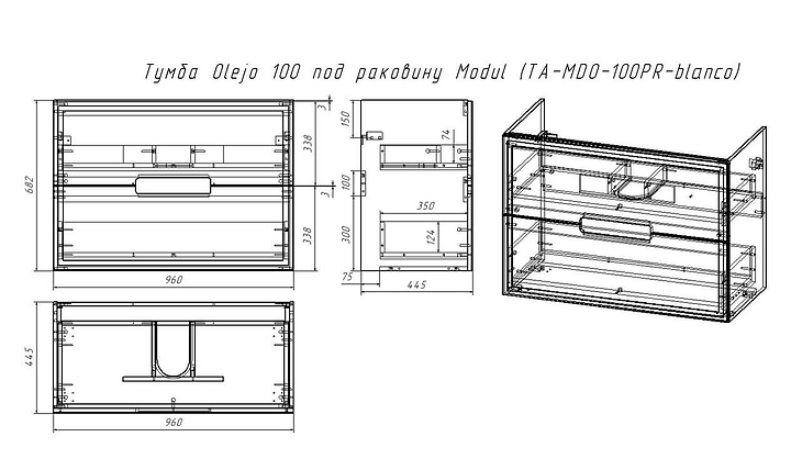 Тумба Taliente Olejio TA-MBO-100PR-blanco под раковину Modul 100 предназначена для использования в ванных комнатах. Модель оснащена двумя выдвижными ящиками. Фасады выполнены из МДФ с покрытием эмалью, корпус из ЛДСП. Особенности: