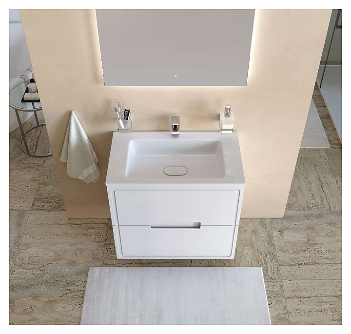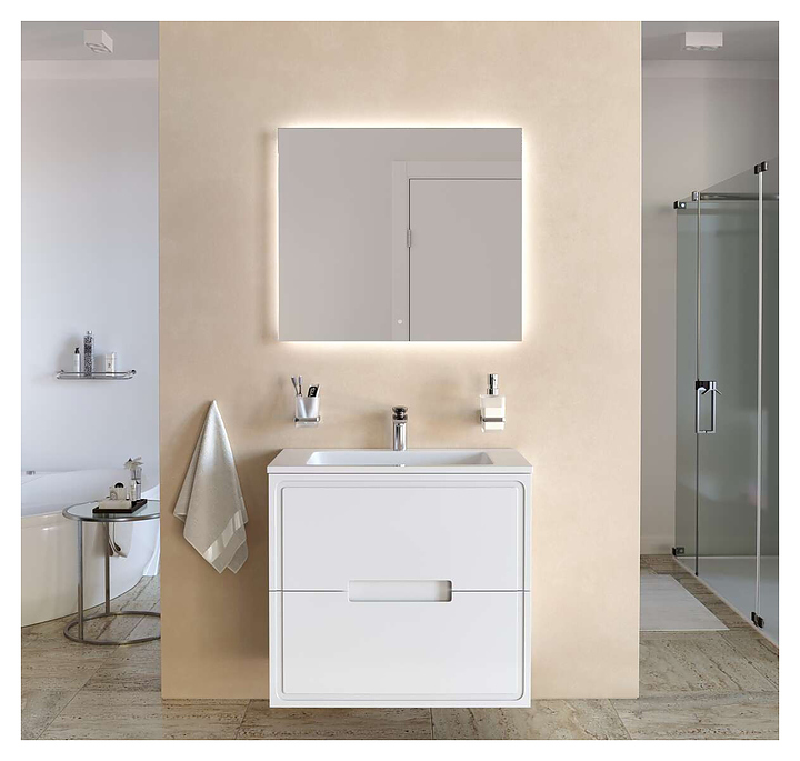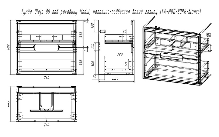 Тумба Taliente Olejio TA-MBO-80PR-blanco под раковину Modul 80 предназначена для использования в ванных комнатах. Модель оснащена двумя выдвижными ящиками. Фасады выполнены из МДФ с покрытием эмалью, корпус из ЛДСП. Особенности: