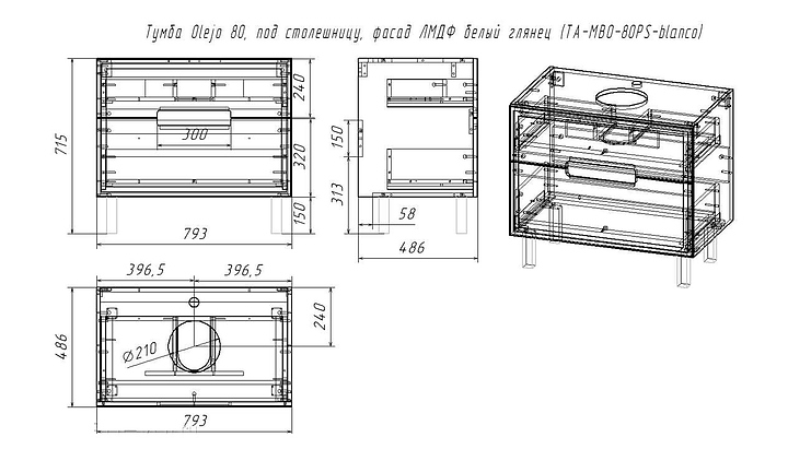 Тумба под столешницу Taliente Olejio TA-MBO-80PS-blanco 79.3х48.6х56 см белый