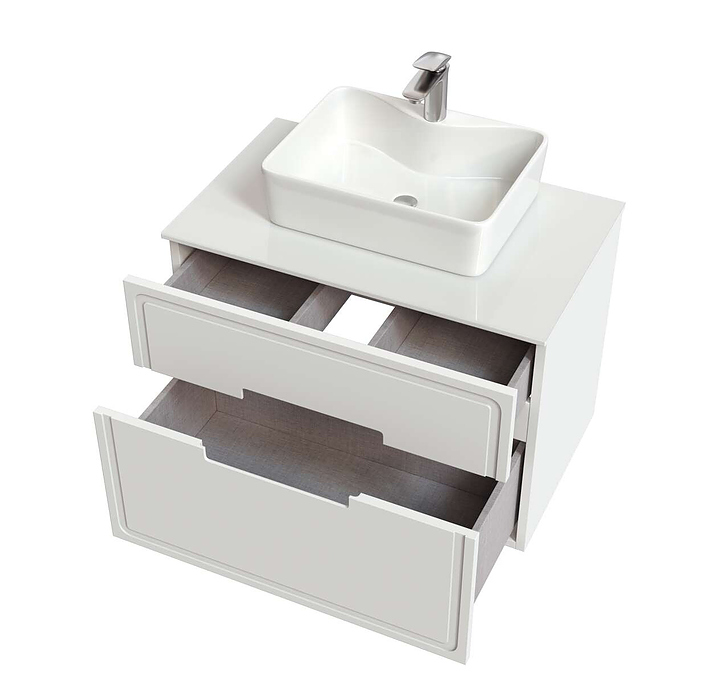 Тумба Taliente Olejio TA-MBO-100PS-blanco под столешницу лакобель 100 Nero/Bianco предназначена для использования в ванных комнатах. Модель оснащена двумя выдвижными ящиками. Фасады выполнены из МДФ с покрытием эмалью, корпус из ЛДСП. Особенности: