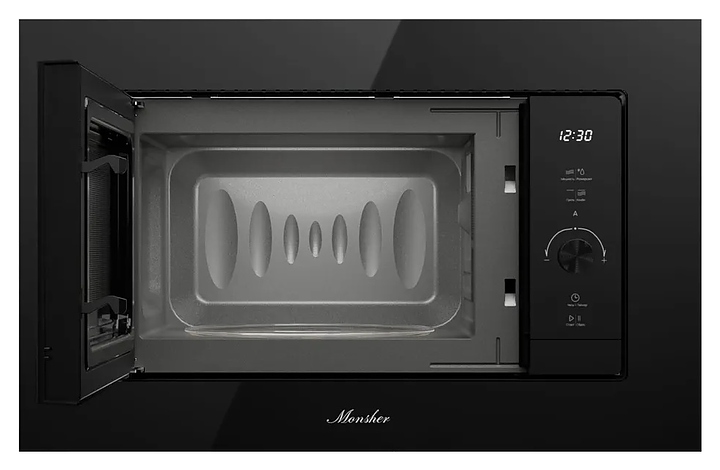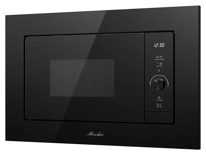 Встраиваемая микроволновая печь Monsher MMH 1120 Noir предназначена для приготовления пищи, подогрева готовых блюд и ингридиентов, а также размораживания полуфабрикатов на предприятиях общественного питания и в домашних условиях. Модель оснащена магнетроном, кварцевым грилем, кабелем питания с вилкой, камерой с распашной дверью со смотровым окном, расположенной в правой части фронта электромеханической панелью управления с сенсорными функциональными клавишами, цилиндрическим поворотным переключателем и цифровым дисплеем с белой подсветкой индикации. Корпус выполнен из высококачественной стали, фронтальные панели черного цвета с полным остеклением без винтового крепежа, внутренняя облицовка камеры с покрытием эмалью легкой очистки, переключатель с черным покрытием, тарелка – из ударопрочного стекла. Комплектация: