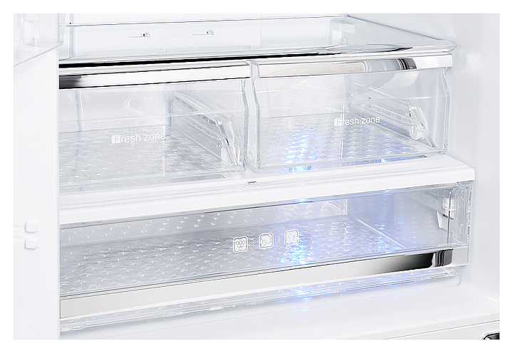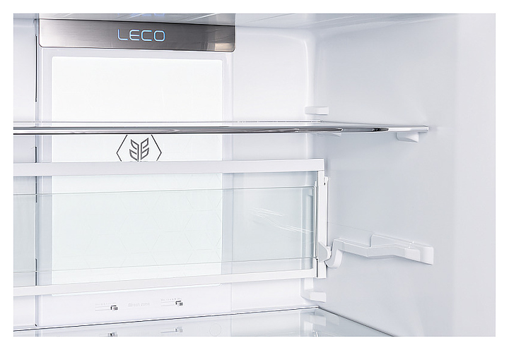 • LECO: система предотвращения размножения микроорганизмов и нейтрализации неприятных запахов путем активации специальной лампы в зоне свежести с автоматическим отключением через 20 мин.