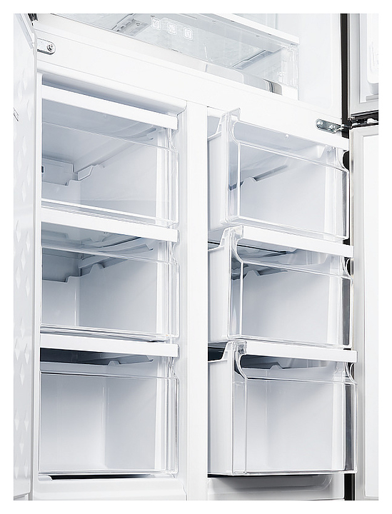 Холодильник Kuppersberg NFML 181 X типа Side- by-Side предназначен для охлаждения, замораживания, кратковременного и длительного хранения пищевых продуктов и напитков в гостиничных комплексах, офисах, а также домашних условиях. Модель оснащена холодильной камерой сверху и 2 морозильными камерами снизу с распашными дверьми, кабелем питания с евровилкой, расположенной в верхней части фасада правой двери холодильной камеры электронной панелью управления с сенсорными функциональными клавишами, дисплеем с цифровыми и символьными сегментами индикации с белой подсветкой. Фасады дверей и боковины выполнены из металла с поверхностью оттенка нержавеющая сталь, внутренняя облицовка камер – из антибактериального пластика белого цвета, плоские полки – из прозрачного закаленного стекла, ящики – из белого пластика с прозрачным фронтом, навесные полки – из прозрачного пластика, ящики и полки декорированы фронтальными металлическими окантовками серебристого оттенка, упаковка – из гофрокартона, полимерной пленки и полистирола.