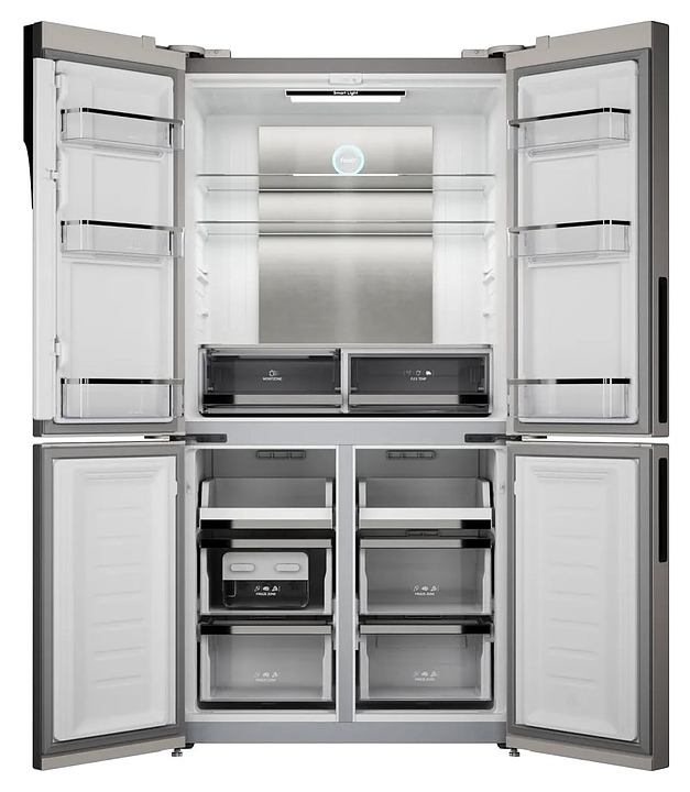 Холодильник Kuppersberg NFFD 185 IG типа Side- by-Side предназначен для охлаждения, замораживания, кратковременного и длительного хранения пищевых продуктов и напитков в гостиничных комплексах, офисах, а также домашних условиях. Модель оснащена холодильной камерой сверху и 2 морозильными камерами снизу с распашными дверьми, кабелем питания с евровилкой, расположенной в верхней части фасада правой двери холодильной камеры электронной панелью управления с сенсорными функциональными клавишами, дисплеем с цифровыми и символьными сегментами индикации с белой подсветкой. Фасады дверей выполнены из металла с поверхностью бежевого оттенка с полным остеклением без винтового крепежа, внутренняя облицовка камер – из антибактериального пластика белого цвета, задняя стенка холодильной камеры с металлической панелью, плоские полки – из прозрачного закаленного стекла, ящики – из белого пластика с прозрачным фронтом, навесные полки – из прозрачного пластика, ящики и полки декорированы фронтальными металлическими окантовками серебристого оттенка, упаковка – из гофрокартона, полимерной пленки и полистирола.