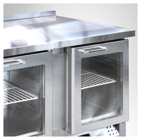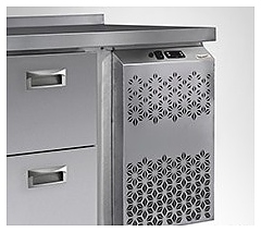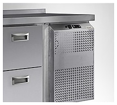 Морозильный стол Finist НХС-700-0/4 предназначен для хранения предварительно замороженных пищевых продуктов на предприятиях общественного питания и торговли. Модель оснащена расположенным сбоку агрегатным отсеком, столешницей, 4 выдвижными ящиками, устойчивыми ножками с подпятниками, кабелем питания с евровилкой и кнопочной панелью управления с цифровым дисплеем. Корпус выполнен из высококачественной нержавеющей стали, задняя стенка - из оцинкованной стали. Особенности: