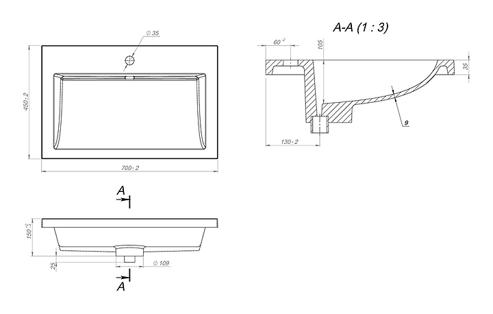 Раковина Stella Polar Луиза 70 70х45 см, мрамор