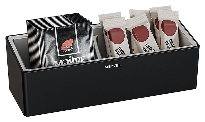 Чайная менажница MEYVEL A-001 (Black) используется совместно с чайниками в качестве органайзера для размещения необходимых принадлежностей и удобства приготовления горячих напитков в гостиницах, офисах и домашних условиях. Модель оснащена 2 отделениями. Корпус прямоугольного сечения выполнен из пластика с черной поверхностью и матовым олеофобным покрытием для защиты от отпечатков пальцев. Внимание! Информация о товарах, размещенная на сайте, не является публичной офертой, определяемой положениями Части 2 Статьи 437 Гражданского кодекса Российской Федерации. Производители вправе вносить изменения в технические характеристики, внешний вид и комплектацию товаров без предварительного уведомления. Уточняйте характеристики у наших менеджеров перед оформлением заказа. |