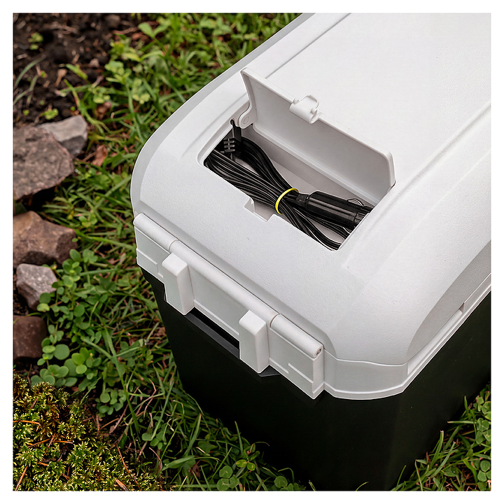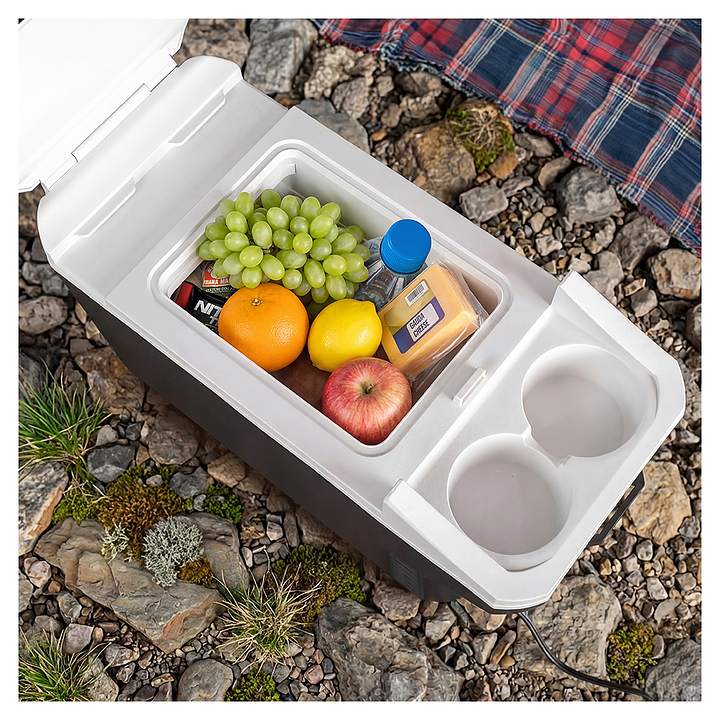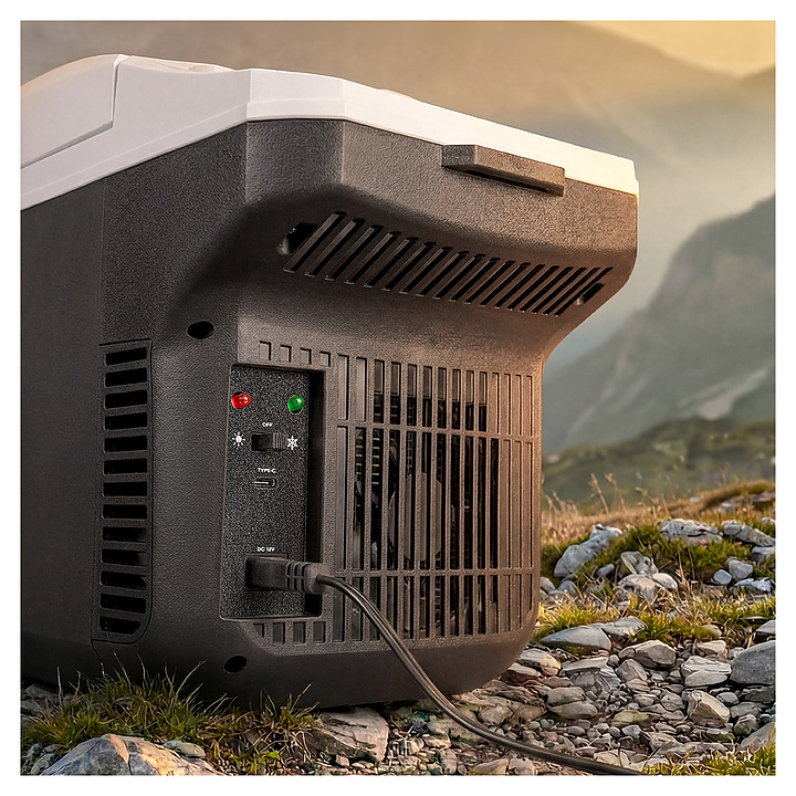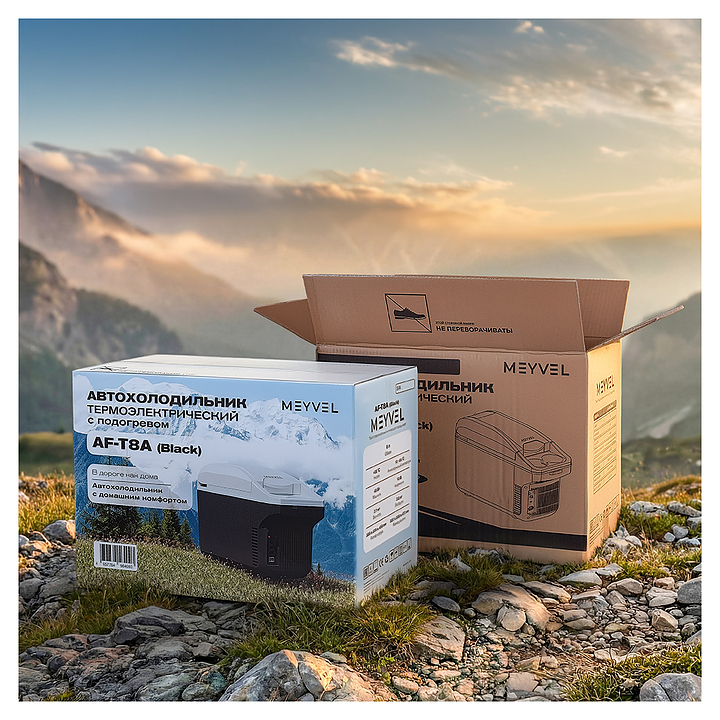 Переносной автохолодильник MEYVEL AF-T8A (Black) предназначен для охлаждения, замораживания, подогрева, хранения и транспортировки пищевых продуктов и напитков в легковых и грузовых автомобилях, автодомах, специальной технике, лодках, катерах, яхтах, других видах транспорта и в быту. Модель оснащена холодильной камерой с откидной крышкой и электромеханической панелью управления. Внешняя облицовка корпуса и выполнена из ударопрочного пластика с матовой поверхностью черного цвета, крышка – из пластика белого цвета, теплоизоляция – из пенополистирола.