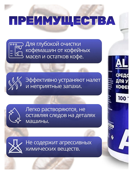 Таблетки для очистки от кофейных масел ALPURO A5 предназначено для использования в барах, кафе, ресторанах и других предприятиях общественного питания и торговли, а также в домашних условиях. ALPURO A5 – Таблетки для удаления кофейных масел. Предназначены для глубокой очистки кофемашин от кофейных масел и остатков кофе, которые могут накапливаться в процессе приготовления напитков. Они эффективно устраняют налет и неприятные запахи, возвращая вашему оборудованию первоначальную свежесть и чистоту. Особенности: