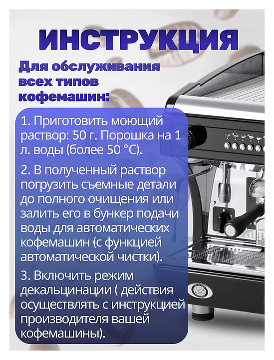Средство для декальцинации кофемашин ALPURO A4 предназначено для использования в барах, кафе, ресторанах и других предприятиях общественного питания и торговли, а также в домашних условиях. Профессиональный порошок для удаления накипи и минеральных отложений с нагревательных элементов и внутренних поверхностей кофемашин. Безопасен для металлических поверхностей, обеспечивает эффективную работу и продлевает срок службы машины. Сертифицирован для профессионального использования. Инструкция по применению: