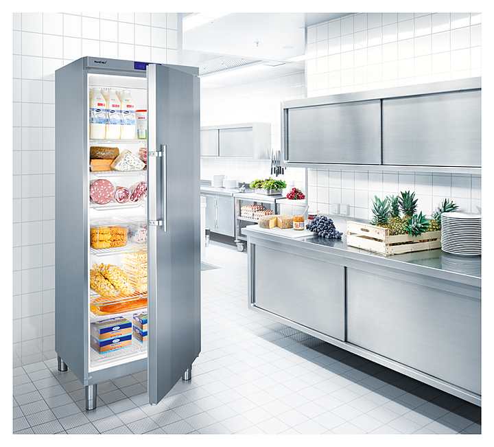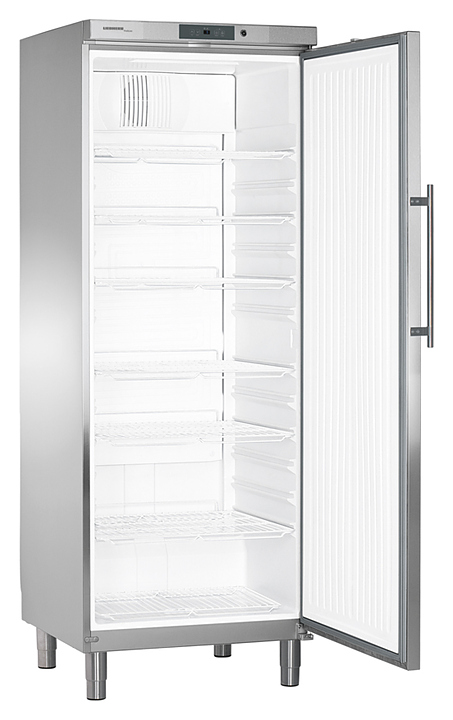 Холодильный шкаф Liebherr GKv 6460 предназначен для охлаждения и кратковременного хранения скоропортящихся продуктов и напитков на предприятиях общественного питания и торговли. Модель оснащена электронным управлением и цифровой индикацией температуры. Внутренняя прокладка выполнена из белого полистирола, корпус и дверь - из нержавеющей стали, покрытие решеток - из пластика. Особенности:
