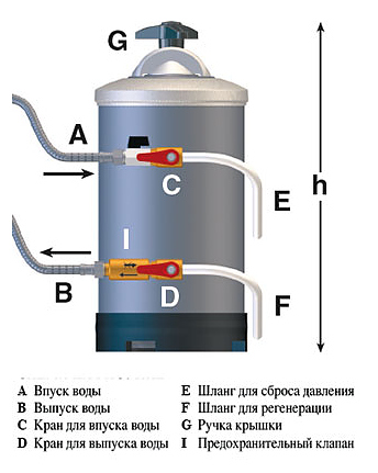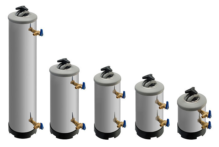Водоумягчитель De Vecchi DVA12 используется на предприятиях общественного питания для умягчения воды. Данная модель может быть подключена к различному кухонному оборудованию с водопроводной сетью: льдогенераторам, кофемашинам, посудомойкам и пр. Умягчитель воды содержит в себе синтетическую ионную смолу, которая нейтрализует ионы магния и кальция, а затем заменяет их на ионы натрия. Его конструкция в виде цилиндрического сосуда изготовлена из нержавеющей стали. Он имеет герметичную крышку. Особенности: