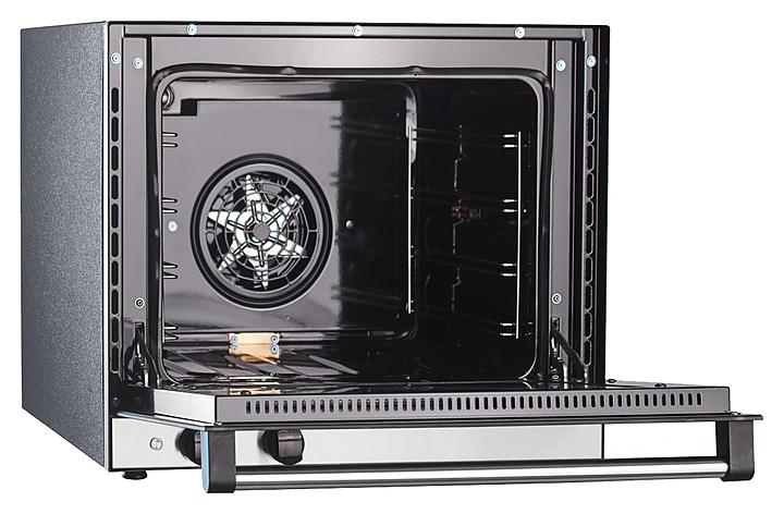 Конвекционная печь Abat ПКЭ-4Э предназначена для выпечки хлебобулочных и кондитерских изделий, приготовления и разогрева блюд из мяса, рыбы и овощей на предприятиях общественного питания и торговли. Модель оснащена регулируемыми по высоте ножками. Корпус выполнен из крашенного металла, внутренняя поверхность - из эмалированного металла. В комплект поставки входят 4 противня размером 435х320 мм из алюминия. Особенности: