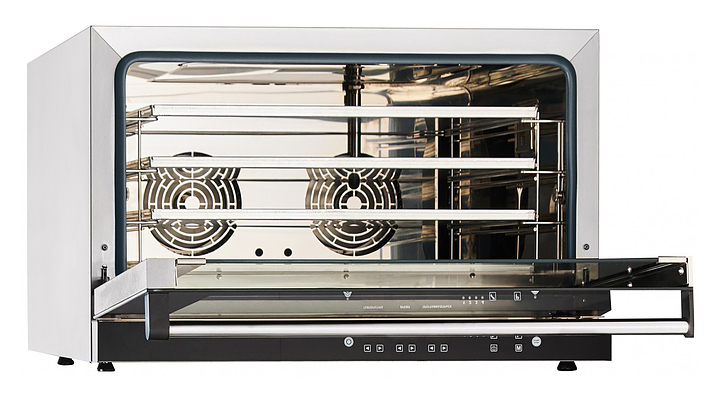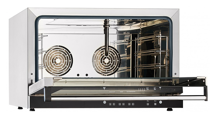 Конвекционная печь Abat КЭП-4П предназначена для выпечки хлебобулочных и кондитерских изделий, приготовления и разогрева блюд из мяса, рыбы и овощей на предприятиях общественного питания и торговли. Модель оснащена регулируемыми по высоте ножками. Корпус и внутренняя поверхность выполнены из нержавеющей стали. Печь используется совместно с вытяжным зонтом Abat ЗВВ-4-6/4. Подходящий расстоечный шкаф ШРТ-8, ШРТ-8Э или подставка ПК-8. Рекомендуется дополнительно приобрести водоумягчитель и фильтр-систему для очистки и смягчения воды. Особенности: