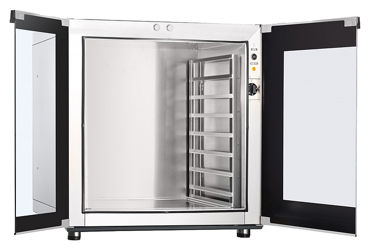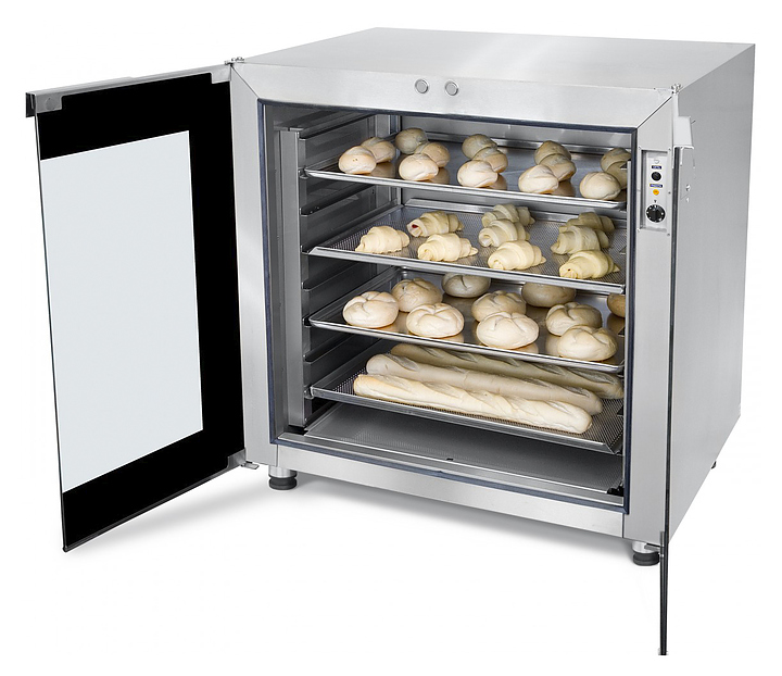 Расстоечный шкаф Abat ШРТ-8 используется в пекарнях, кондитерских и на предприятиях общественного питания и торговли для расстойки тестовых заготовок, в процессе которой тесто увеличивается в объеме и приобретает ровную поверхность, восстанавливается его пористость. Модель оснащена лотком для сбора конденсата и регулируемыми по высоте ножками. Корпус и внутренняя поверхность рабочей камеры выполнены из нержавеющей стали. Дополнительные характеристики: