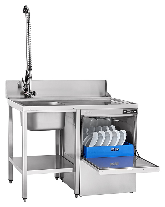 Посудомоечная машина с фронтальной загрузкой Abat МПК-500Ф-02 используется на предприятиях общественного питания и торговли для мойки тарелок, стаканов, бокалов, столовых приборов, а также гастроемкостей и противней. Модель оснащена электронной панелью управления, мощными нержавеющими ТЭНами и съемными нержавеющими форсунками. Детали, контактирующие с водой, и облицовка выполнены из нержавеющей стали AISI 304, разбрызгиватели - из нержавеющей стали AISI 321. Комплектация: