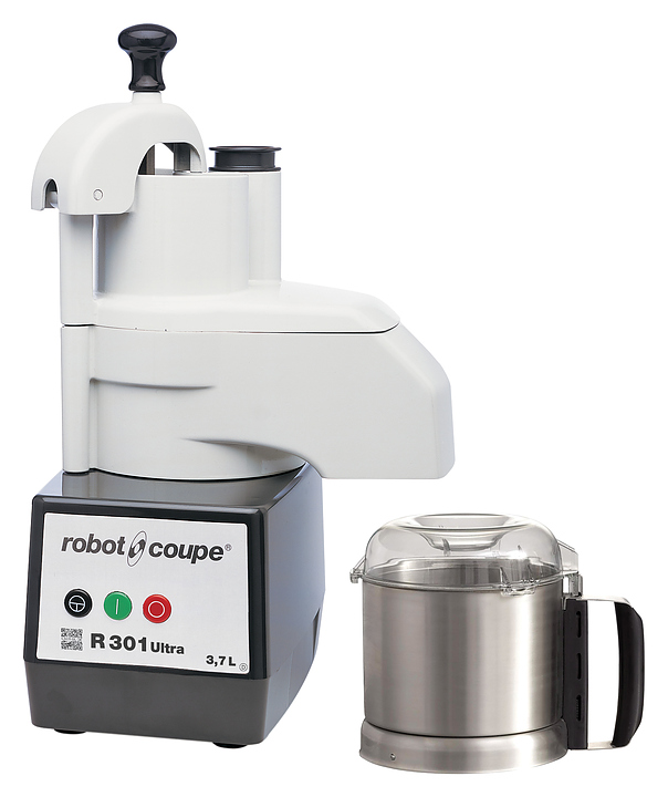 Кухонный процессор Robot Coupe R301 Ultra используется на предприятиях общественного питания и торговли для всех видов нарезки, замешивания и измельчения продуктов питания. Насадка-овощерезка оснащена 2 воронками: большая - для нарезки крупных овощей как капуста и сельдерей, круглая - для длинных овощей. Аппарат представляет собой куттер и овощерезку в одном виде. В комплект поставки входят съемный гладкий нож с запатентованным лезвием с низкой посадкой и 4 диска: слайсер 2 и 4 мм, терка 2 мм и соломка 4х4 мм. Особенности: