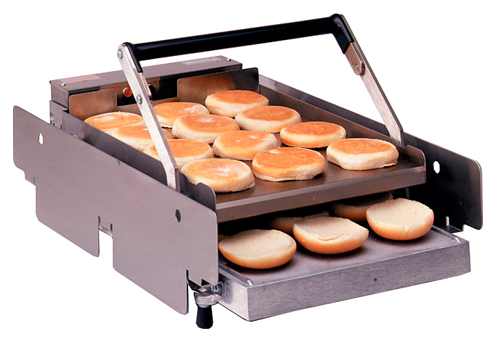 Контактный тостер Prince Castle 212-GFCCE предназначен для карамелизации булочек, используемых для бургеров и горячих бутербродов на предприятиях общественного питания. На срезе образуется румяная корочка, благодаря которой в булочку не впитывается мясной сок и соус, булка остается мягкой и воздушной. Модель оснащена одна створкой и таймером. Конструкция выполнена из нержавеющей стали и алюминия с прочным никелированным нагревательным элементом для равномерного нагрева.