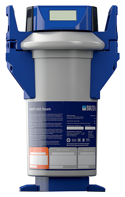 Фильтр-система Brita PURITY 450 Steam применяется для фильтрации воды, используемой исключительно в пароконвектоматах, печах и прочих стимерах. Фильтр обеспечивает защиту от накипи и соблюдение стандартов воды для приготовления здоровой пищи. Электронный дисплей контролирует своевременную замену картриджа в фильтре, соответствие работы фильтра с настройкой bypass, а также отображает количество отфильтрованной воды с момента монтажа системы. Срок службы системы - 10 лет. В комплекте: