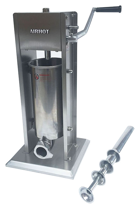 Шприц для колбас Airhot SV-7 используется на предприятиях общественного питания и торговли для автоматической набивки готовой смеси в искусственную или натуральную оболочку при приготовления купат, колбас, сосисок, сарделек, шпикачек и прочих мясных изделий. Модель оснащена 2 скоростями хода поршня. Корпус выполнен из нержавеющей стали. В комплект поставки входят 4 насадки из нержавеющей стали: Ø 16, 22, 32 и 38 мм. Особенности: