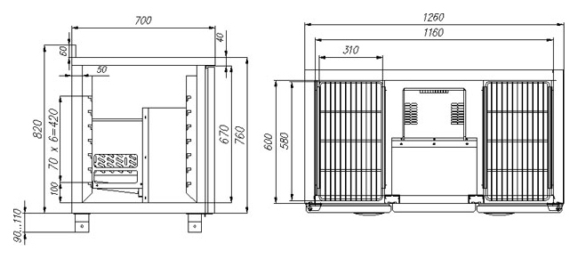 Стол морозильный Carboma T70 L2-1 0430-2 (2GN/LT 11) с бортом