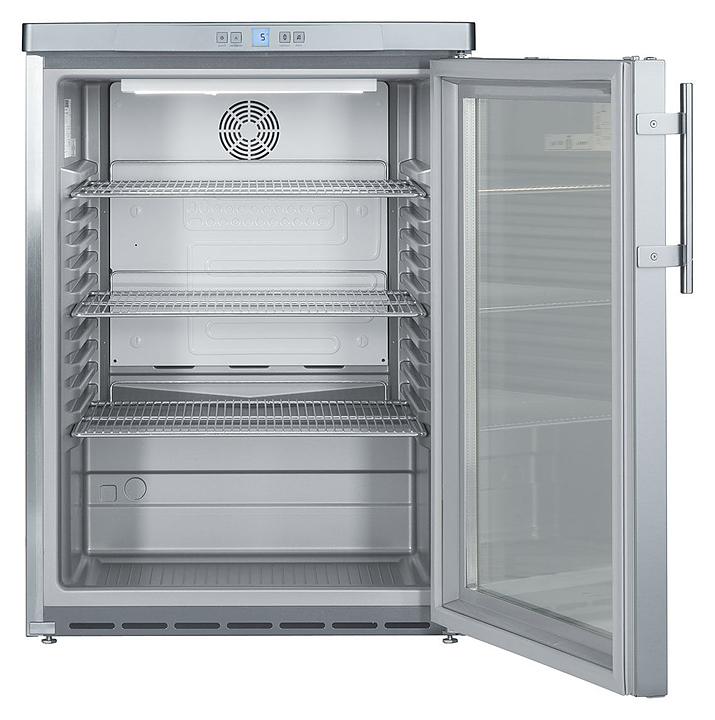 Холодильный шкаф Liebherr FKUv 1663 предназначен для охлаждения и кратковременного хранения скоропортящихся продуктов и напитков на предприятиях общественного питания и торговли. Модель оснащена электронным управлением и цифровой индикацией температуры. Внутренняя прокладка выполнена из серого полистирола, корпус и ручка - из нержавеющей стали, дверь - из двойного стекла, решетки - из металла с порошковым покрытием. Особенности: