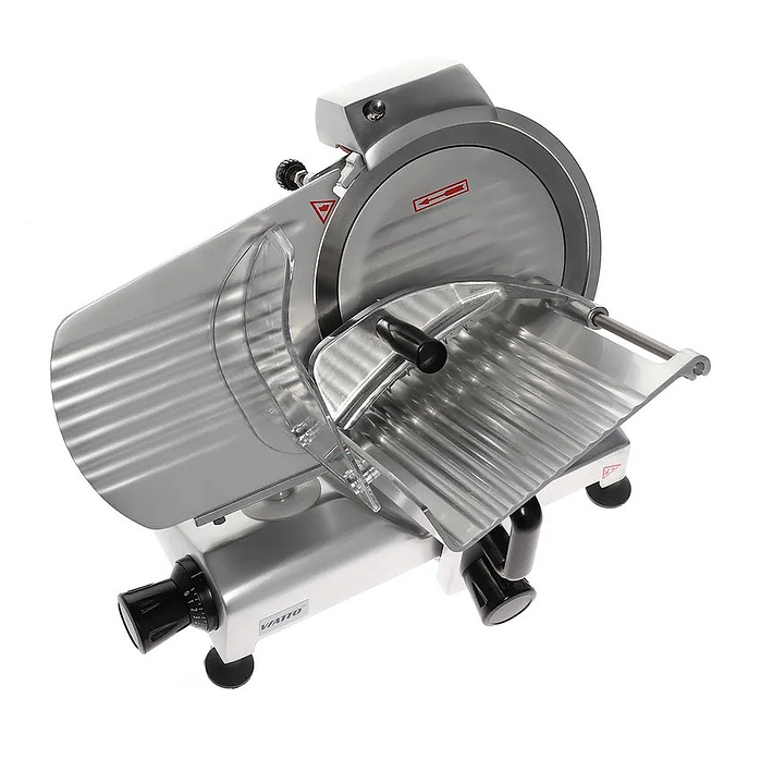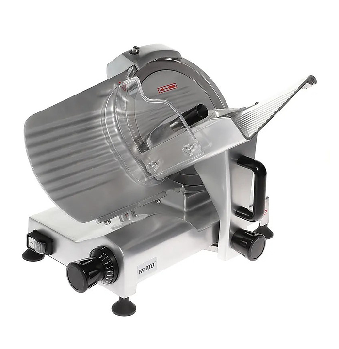 Слайсер VIATTO HBS-300 предназначен для нарезки тонкими одинаковыми ломтиками приготовленного мяса, колбасных изделий, сыра и овощей на предприятиях общественного питания и торговли. Модель оснащена затачивающим устройством и ножом. Корпус выполнен из алюминиево-магниевого сплава, нож - из нержавеющей стали SS420. Дополнительные характеристики: