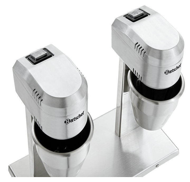 Миксер для молочных коктейлей Bartscher 135102 используется на предприятиях общественного питания и торговли для приготовления молочных шейков, смузи, соусов, муссов, коктейлей с ледяной крошкой, сорбе и пюре. Стакан миксера можно мыть в посудомоечной машине. Корпус выполнен из матированной нержавеющей стали, стаканы, мешалки и диски для перемешивания - из хромированной стали. Дополнительные характеристики: