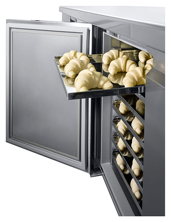 Стол отложенной расстойки Gemm TAL/21S серии PLANET предназначена для раскатки теста, обработки ингредиентов для приготовления блюд, расстойки тестовых заготовок перед процессом выпечки в пекарском шкафу или промышленной духовке на предприятиях общественного питания и торговли. Процесс можно разбить на две фазы: «холодную», когда продукт сохраняется до 6 дней при холодной температуре без расстойки, и «горячую», при которой обеспечивается сама расстойка. Модель оснащена цифровым термостатом. В комплект поставки входят по 7 пар направляющих под размер 600х400 мм для каждой двери. Рабочая поверхность в комплект не входит. Особенности:
