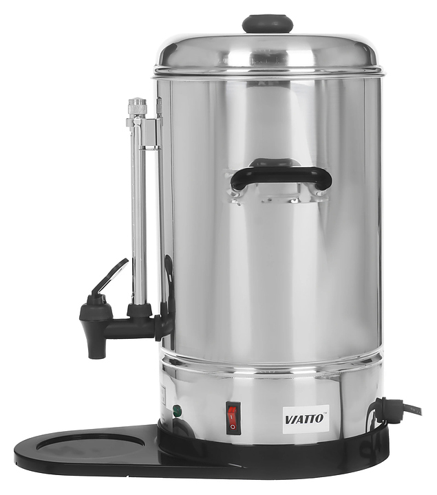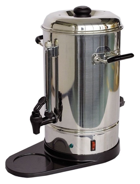 Кофеварка-перколятор VIATTO CP06 используется на предприятиях общественного питания и торговли для приготовления чая и кофе, нагрева и кипячения воды. Модель оснащена ситом, которое позволяет заваривать кофе и чай. Корпус выполнен из нержавеющей стали, кран для розлива, ручки корпуса и крышки - из пластика. В комплект поставки входит перколяторная трубка для кипятка и фильтр для кофе. Особенности: