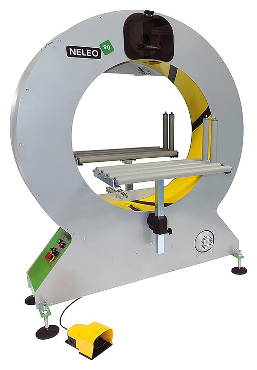 Упаковочная машина Plasticband Neleo 90 предназначена для упаковки, группировки и защиты длинномерных изделий, таких как молдинги, профили, алюминиевые трубы и жалюзи в стрейч-пленку на предприятиях различных направлений. Модель оснащена ножной педалью для активации цикла упаковки. Особенности: