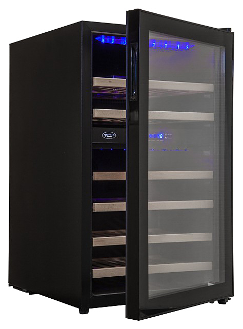 Винный шкаф Cold Vine C34-KBF2 создает оптимальные условия для сохранения всех вкусовых свойств разливного вина. Модель оснащена встроенным вентилятором, 6 деревянными полками и подсветкой. Корпус выполнен из металла, дверь - из прозрачного стекла с УФ-фильтром. Особенности:
